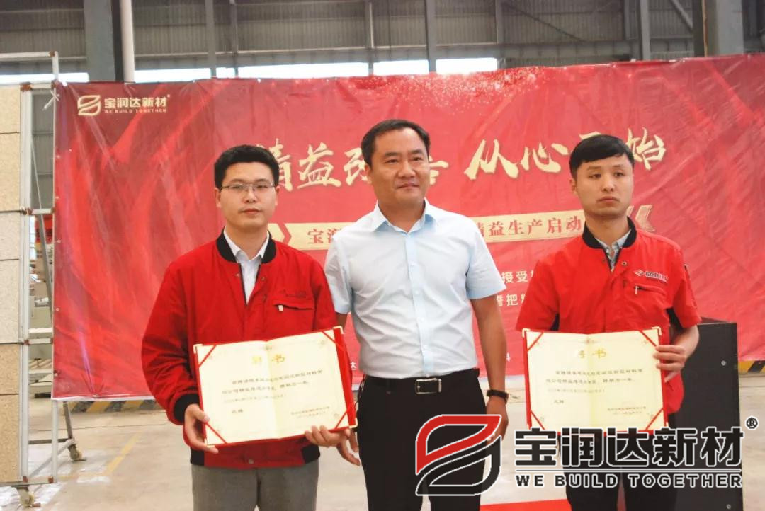 寶潤達新材董事長黃強、總經理朱正葉分別為精益項目改善相關負責人頒發(fā)聘書