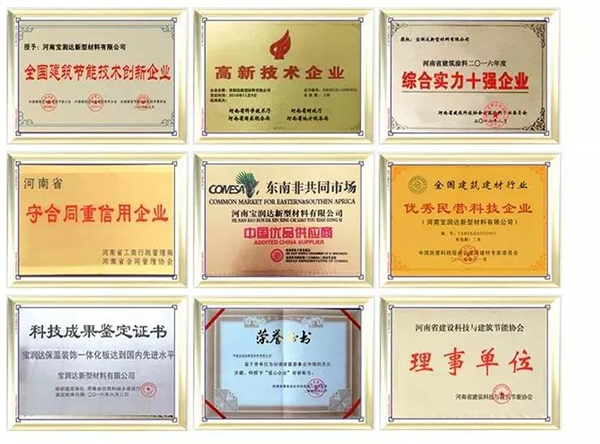 源于對(duì)環(huán)保的理解以及相應(yīng)國(guó)家綠色節(jié)能政策,寶潤(rùn)達(dá)自成立以來(lái)始終注重科技研發(fā)與創(chuàng)新工作,憑借“國(guó)家高新技術(shù)企業(yè)” “河南省省級(jí)企業(yè)技術(shù)中心”自身優(yōu)勢(shì),不斷加大科研投入,寶潤(rùn)達(dá)先后獲得“一種聚氨酯復(fù)合板材甩膠裝置”“一種聚氨酯復(fù)合板材殘?jiān)占b置 ”“一種新型鋼筋桁架板 ”“一種帶狀卷料輸送速度控制系統(tǒng)”“沉降式自動(dòng)板材烘干室”、“仿石材一體保溫板”、“180度轉(zhuǎn)板涂裝輸送系統(tǒng)”……等實(shí)用新型專利。寶潤(rùn)達(dá)積極探索產(chǎn)品成長(zhǎng)趨勢(shì),促進(jìn)行業(yè)良好的發(fā)展態(tài)勢(shì),助推節(jié)能建材行業(yè)進(jìn)入全新時(shí) 。