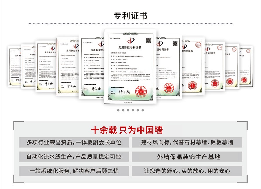 寶潤達在保溫裝飾一體板領(lǐng)域的優(yōu)勢,不僅僅只是建立在現(xiàn)代化的生產(chǎn)車間、先進的制造工藝、卓越的產(chǎn)品性能上。寶潤達自1996年涉足外墻裝飾領(lǐng)域以來,積累了24年的行業(yè)經(jīng)驗,擁有一支行業(yè)高水準(zhǔn)的設(shè)計、安裝施工隊伍,真正具備集產(chǎn)品、設(shè)計、施工為一體,打造精品工程的能力。只要您給寶潤達參與的機會,我們就有十足的信心向您提供放心的系統(tǒng)化解決方案。